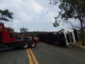 MANHUAÇU – Uma carreta carregada com cervejas tombou no km 584 da BR-116, na região de São Pedro do Avaí, distrito de Manhuaçu, na tarde do último sábado (19).
