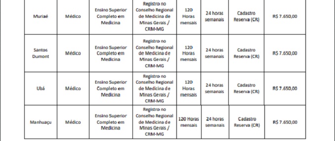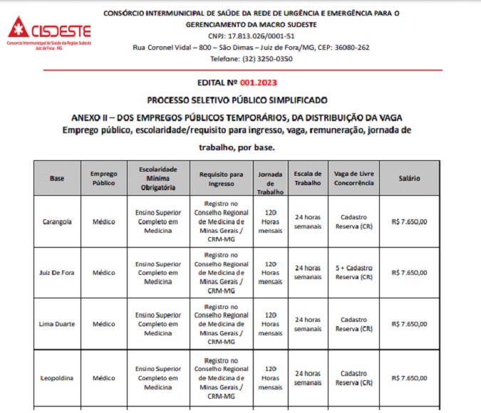 DA REDAÇÃO – O Consórcio Intermunicipal de Saúde do Sudeste de Minas (Cisdeste)/Samu abriu processo seletivo para contratação de médico, estatístico e operador de frotas. Além de Manhuaçu, as vagas são para contrato temporário e são distribuídas para Muriaé, Leopoldina, Ubá, Carangola, Lima Duarte, Juiz de Fora, Santos Dumont, Ponte Nova e Viçosa.