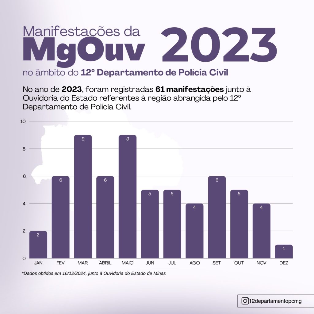 12º Departamento de Polícia Civil de Ipatinga divulga o quantitativo de reclamações para os anos de 2023 e 2024