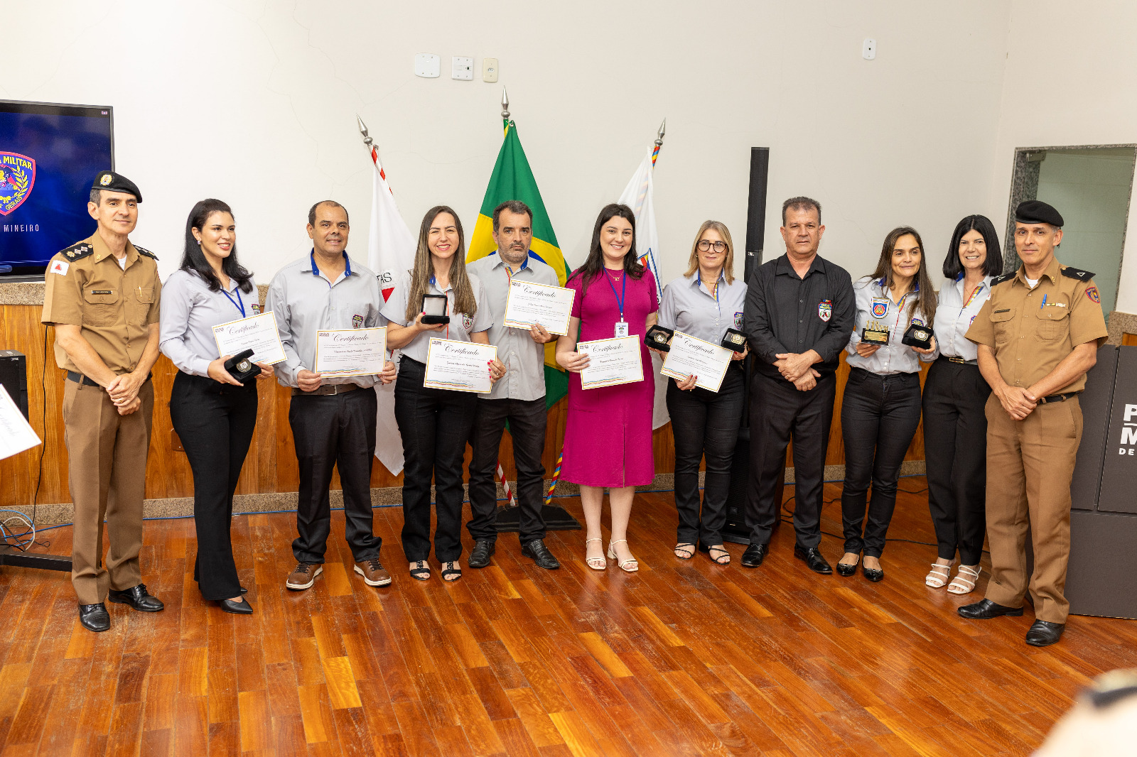 Durante o evento foram agraciados destaques profissionais nas modalidades ocorrência de placa do ano, comandante de companhia destaque, comandante de pelotão destaque, destacamento padrão, gestor de projetos destaque, destaque do COPOM, servidor civil destaque e nas modalidades administrativa, pedagógica, operacional e motorista padrão os seguintes militares e funcionários civis: