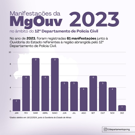 O 12º Departamento de Polícia em Ipatinga vem acompanhando todas as reclamações, conforme planilha referente aos anos de 2023 e 2024, demonstrando as respectivas resoluções ou justificativas apresentadas aos reclamantes e à sociedade. Considerando que, no mesmo período (até 16/12), foram registradas 62 manifestações em 2023 e 50 em 2024, constata-se, salvo melhor juízo, uma queda de 19,35% no número de reclamações na área do 12º DEPPC. Analisando por regionais, o mesmo período, Ipatinga apresentou uma queda de 45%; Itabira uma queda de 11.76%; João Monlevade 60%; Ponte Nova de 16,67%. Apenas as regionais de Caratinga e Manhuaçu apresentaram acréscimos.