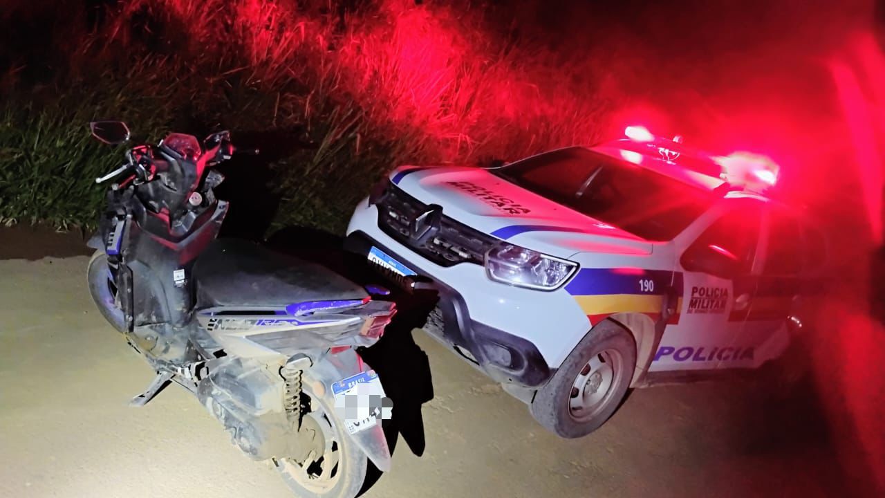 A Polícia Militar recuperou uma motocicleta roubada durante uma ação realizada nesta terça-feira (17), em São João do Manhuaçu. O veículo havia sido roubado na cidade de Divino e foi localizado após o autor tentar fugir ao perceber a presença dos policiais.