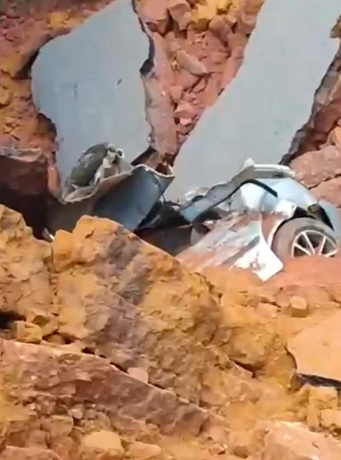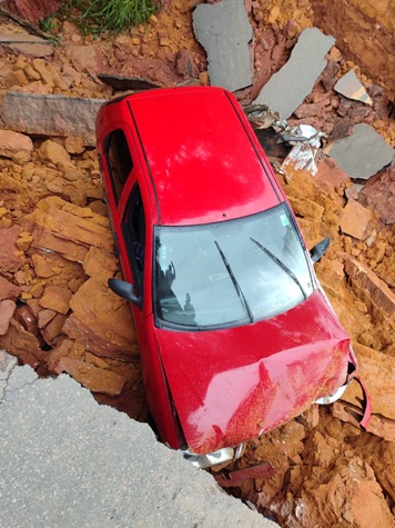 O incidente envolveu dois veículos cujos seus ocupantes tiveram o infortúnio de passar neste trecho justamente no momento em que houve o rompimento da pista. O veículo Fiat Palio foi retirado da cratera com o condutor em estado estável, mas o Celta, o soterramento dificultou a identificação imediata.