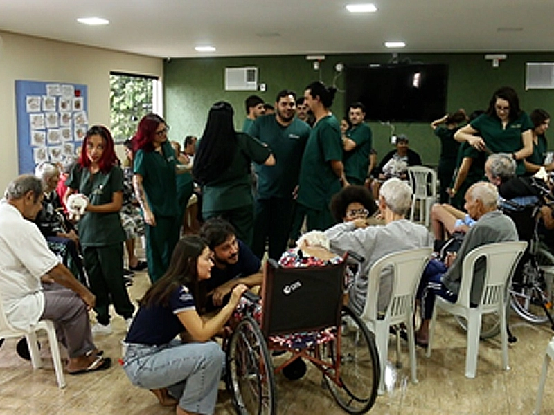 Veterinária do UNEC troca saber por afeto em tarde de terapia com animais no recanto dos idosos