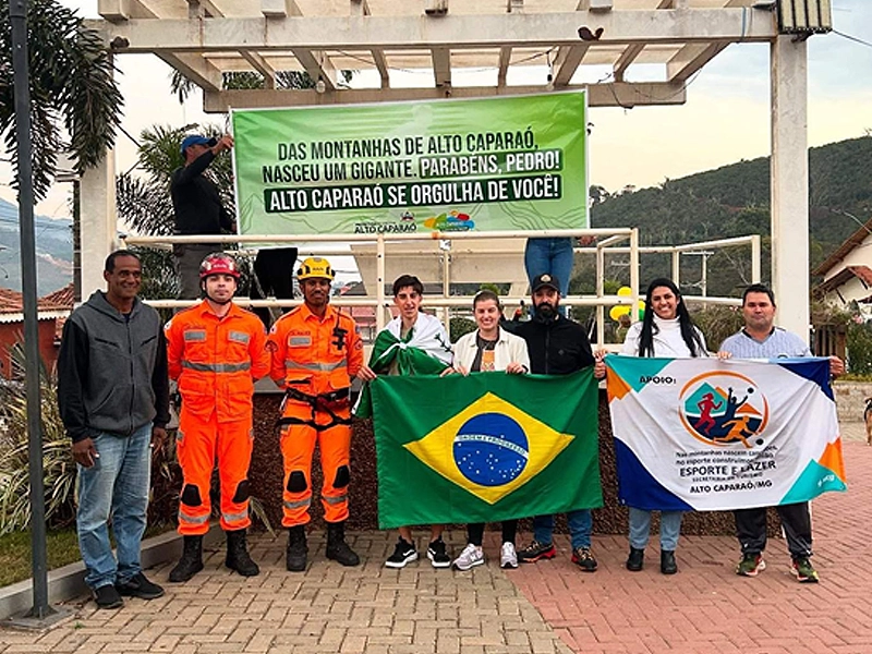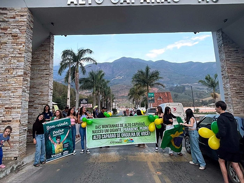 Durante a homenagem, foi exibida uma faixa com a mensagem “Das montanhas de Alto Caparaó, nasceu um gigante!”, expressando o orgulho da cidade pelo feito do jovem atleta.