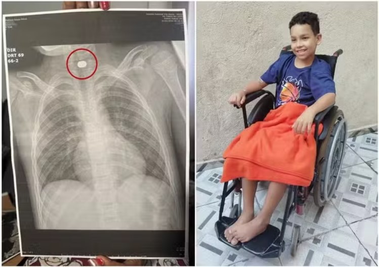 O tiro atingiu a vértebra C7 de Matheus, na coluna cervical. Devido à localização sensível da bala, os médicos avaliaram que seria mais seguro não removê-la por enquanto.