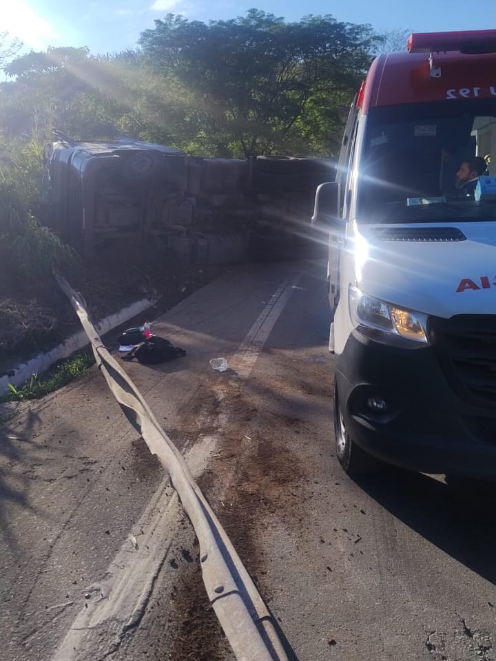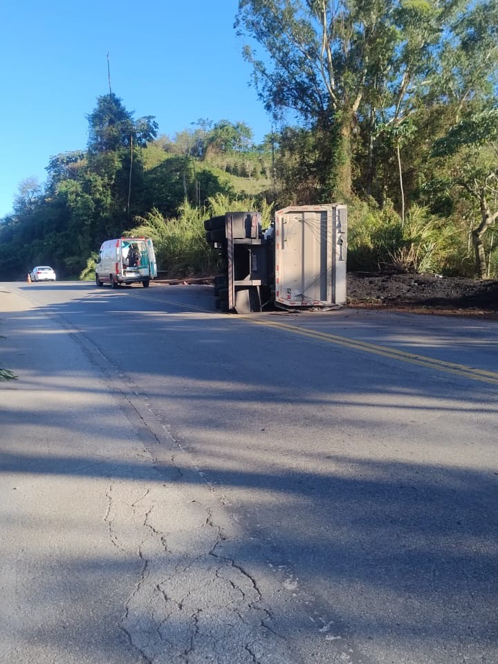 Segundo as informações iniciais, o condutor da carreta sofreu apenas escoriações. O veículo ainda será removido da pista.