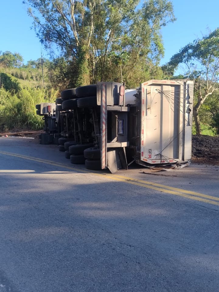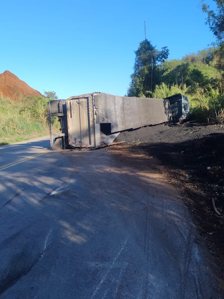 Na manhã desta sexta-feira, uma carreta carregada de carvão tombou na BR-262, nas proximidades de Rio Casca. Equipes de socorro e a Polícia Rodoviária Federal foram acionadas e estiveram no local para prestar atendimento.