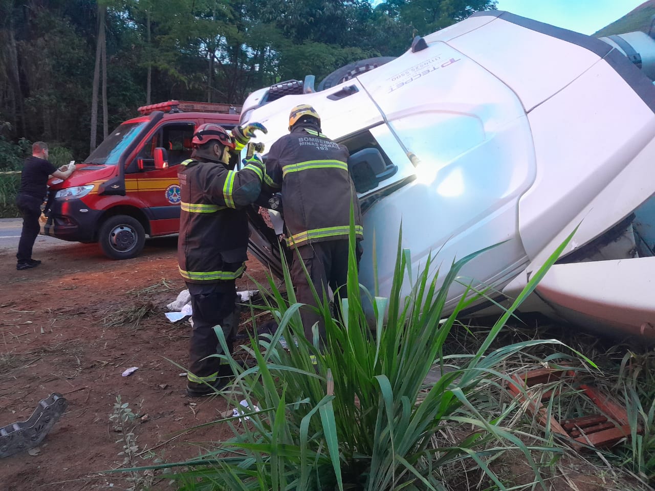 Segundo o Corpo de Bombeiros, a equipe foi acionada por volta das 16h10 para atender a um possível capotamento com risco de incêndio. Ao chegarem, encontraram a composição tombada em um barranco no sentido contrário da via. De acordo com a corporação, o condutor perdeu o controle da direção ao fazer a curva, ocasionando o acidente.