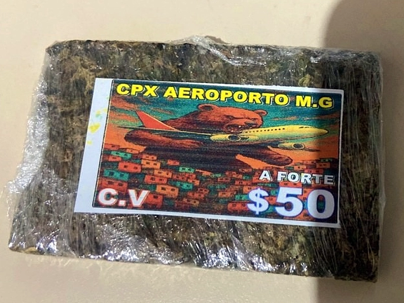 Durante a abordagem, os policiais encontraram 16 pinos de cocaína no bolso de uma blusa do suspeito. No trajeto da fuga, a equipe também localizou um pacote que ele havia jogado fora, contendo 60 tabletes de maconha. As embalagens apresentavam etiquetas com inscrições como “CPX AEROPORTO M.G; C.V; A FORTE $ 50”.