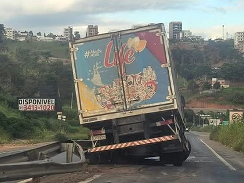 Polícia Caminhão colide com defensa metálica e interdita faixa da BR-262 em Manhuaçu 16 de janeiro de 2026